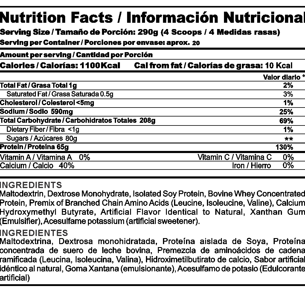 GAINZ es un producto de última generación que incluye en su fórmula 65 gramos de proteína y un masivo aporte de calorías por porción, ideal para atletas de alto rendimiento cuyos requerimientos calóricos son exigentes o personas que deseen potencializar los resultados deseados.