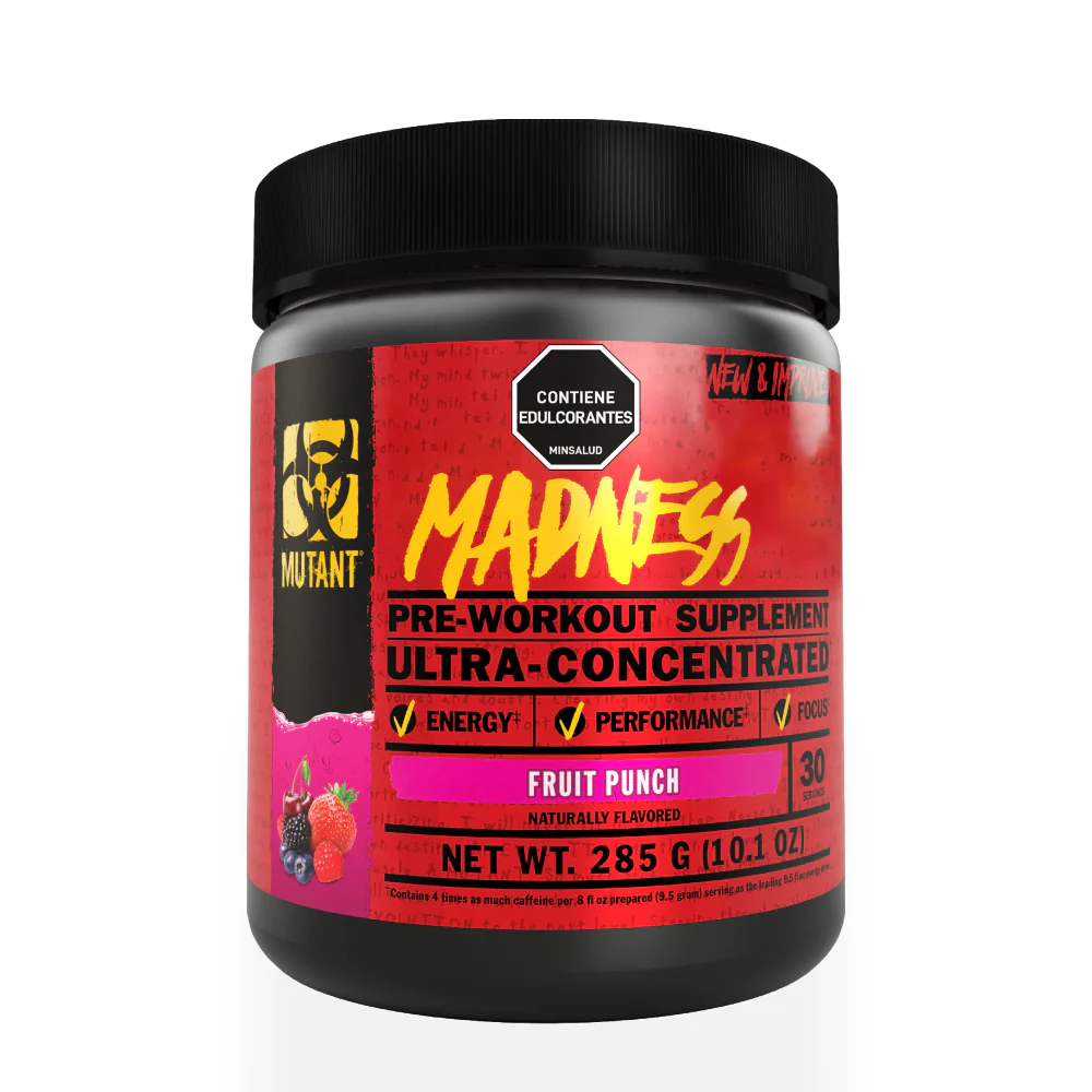 Mutant Madness de Mutant es un pre entreno ultra concentrado en polvo de última generación diseñado para mejorar la intensidad y el rendimiento durante el entrenamiento gracias a la combinación sinérgica de los mejores compuestos potenciadores del rendimiento con una mezcla estudiada de estimulantes del sistema nervioso central y amplificadores de la absorción.