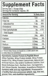 Su fórmula avanzada combina proteínas de alta calidad, ofreciendo resultados superiores basados en la ciencia y la investigación. Cada porción contiene 24 gramos de proteína pura, proporcionando los aminoácidos esenciales necesarios para favorecer la recuperación muscular.